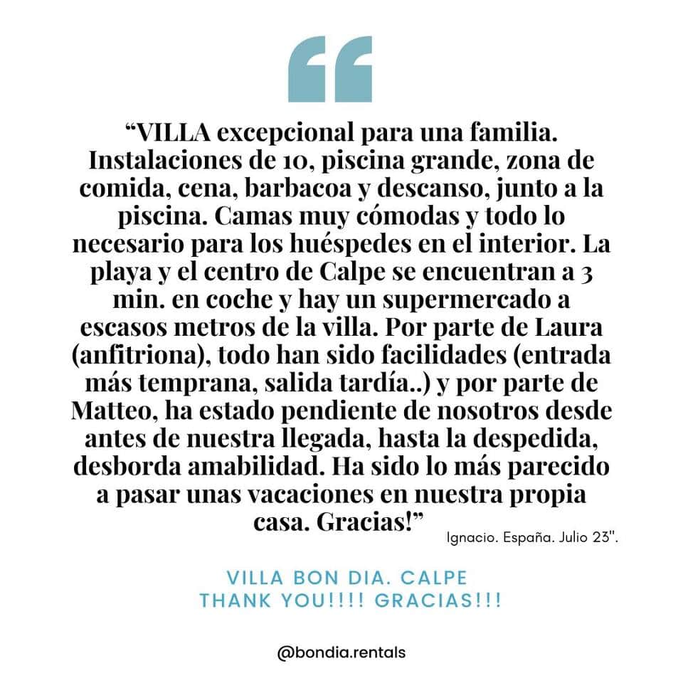 Descubre esta fabulosa villa con vistas al Peñón de Ifach, dónde viviras una experiencia increíble. "Villa Bon Dia", perfecta para recibir amigos y familias. Es ideal para grupos de ciclistas, con seguridad para sus bicis. Disfruta de la zona exterior con piscina, JACUZZI y casa de la Piscina, bar con bbq y zona chill out remodelada!! Obra terminada Mayo 2026 Villa Bon Dia es un sueño de verano hecho realidad. No esperes más y reserva tu estancia en este lugar único. Preparate para vivir una experiencia memorable en nuestra Villa en Calpe, la Costa Blanca. Nuestra encantadora villa ofrece todas las comódidades que necesitas para una estancia perfecta. La vivienda está en la 1a planta con cocina independiente completa!, 3 habitaciones y 2 baños completos en el 1r PISO y unas preciosas y luminosas vistas desde el porche principal de la casa, todos los huéspedes tendrán su propio espacio. Además contamos con una habitación INDEPENDIENTE de matrimomio, con acceso al 1/2 baño exterior. TODO con Aire Acondicionado. La Zona exterior, REMODELADA MAYO 2026!!!!!!!! Cuenta con piscina y Jacuzzi, zona de bar, bbq y chill out, caseta de piscina con salón y cocina americana completa con Aire Acondicionado. Capacidad máxima 9 personas. Es un lugar ideal para disfrutar del turismo y relax. Desde donde descubrir todas las playas y encantadoras calas de sus alrededores, salir a pasear para ver los amaneceres junto los elegantes flamencos de las salinas, perderte durante las noches de verano por el casco antiguo y aumentar tu creatividad y foco durante los cálidos inviernos que ofrece Calpe. Si vienes escapando de los inviernos fríos, el amplio espacio, comodidad de la villa y el privilegiado entorno de Calpe te llenaran de energia. Además contaras tanto con calefacción como con bomba de calor y wifi gratis para mayor confort. Disfruta de deliciosas barbacoas y paellas en el porche de la barbacoa. La diversión está asegurada! Si vienes de vacaciones en verano, podrás relajarte y refrescarte en nuestra piscina con ducha exterior y baño, mientras planeas escapadas por las escenicas e impresionantes rutas con vistas que te llevan a las mejores playas y calas de la Costa Blanca. No pierdas la oportunidad de vivir esta experienca inolvidable en Calpe, todo un paraíso! Relajáte leyendo en el porche o disfruta de un baño refrescante. En esta villa de 900 metros de parcela todos encontraréis vuestro lugar favorito. Tendréis acceso a las instalaciones de la villa, la vivienda en la primera planta y una habitación independiente de matrimonio. Podeis contactar con nosotros a través de mensaje y además contamos con un conserje privado a tu disposición para cualquier emergencia. Te esperaremos con un pack de Bienvenida. La hospitalidad, la cercania y la ayuda a los viajeros son los principales valores que nos definen como anfitriones. Nuestro objetivo es brindar un servicio excelente, en un lugar único y con una atención inmejorable. Nos encantara acompañarte en esta experiencia! 🔴NOTA IMPORTANTE🔴 En este establecimiento hay que tener en cuenta la siguiente normativa que impone el Departamento de Turismo de la Comunidad Valenciana: 1️⃣ Con entrada en vigor de la nueva normativa de las viviendas de uso turística de la Comunidad Valenciana, el 8 de agosto de 2024, sólo se consideran viviendas de uso turístico las que no excedan de 10 días. Si su estancia es de 11 días o más, le adjuntaremos un CONTRATO TEMPORAL donde podrá leer y firmar las condiciones de su estancia. Tenga en cuenta que para un alquiler temporal hay cargos adicionales. COMO MÍNIMO 24 horas antes de su check in deberá devolver el documento firmado por la misma via. 2️⃣REGISTRO DE HUÉSPEDES: De acuerdo con el Decreto Ley 933/2021, el registro de todos los huéspedes es obligatorio, independientemente de su nacionalidad o edad, al igual que en un HOTEL. Usamos la aplicación PARTEE y HOSTAWAY. De este modo, te agradecemos que envíes con antelación los datos de identidad (documento o pasaporte), dirección, correo electrónico y contacto de todos los huéspedes. Si viajas con menores de 14 años, también será necesario indicar su relación o parentesco con el resto del grupo. Gracias por tu colaboración. ¡Estamos aquí para que tengas una experiencia inolvidable! Saludos. Laura. Este establecimiento dispone de Licencia Turística y está inscrito en el Registro de la propiedad de España. VT-504483-A.